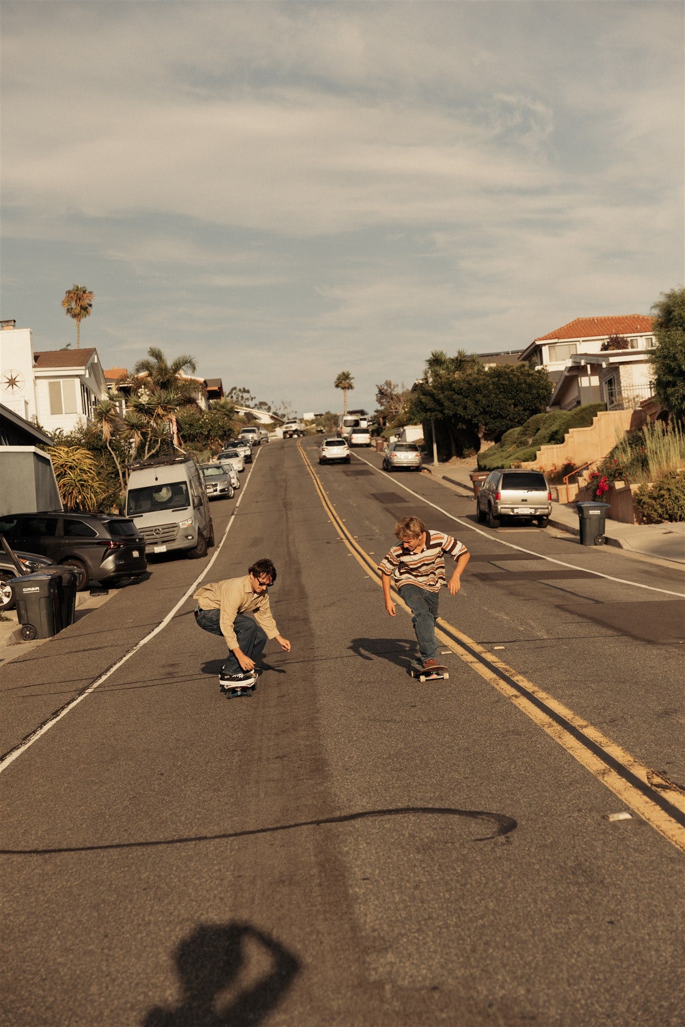 Each of them is fearless in their own way. They crave action over screen time. They hop on trolleys, skate streets lined with eucalyptus and salt, launch off cliffs, dive off rocks, surf wild swells, and dodge sharks spotted in the still waters around them. Their freedom is as beautiful as it is terrifying—careless yet instinctual, faces lifted to the wind, hair plastered to their necks. And yet small accidents can grow into tragedies. The ocean is vast and they are small, but alive in it in ways many of us never will.