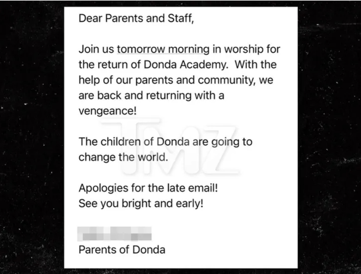 EDIT: Word is that more parents are pulling their kids out of Donda and they’re desperately scrambling to recruit new students.