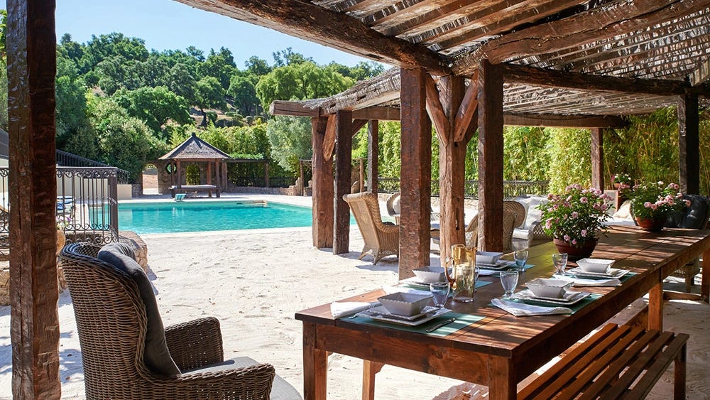 Which is actually an entire village, complete with a bistro, a wine cave, a skate park and several houses. Once abandoned, the village in Provence’s Le Plan De La Tour is about a dozen miles outside of Saint-Tropez and loaded with rustic European charm. The 4,500-square-foot main residence includes five bedrooms and three-and-a-half e one of the six guest homes was originally the town’s church. The village also includes a covered wagon with a bath and kitchen, a full gym, a pirate styled lair and an art studio, along with outdoor dining in the town square. Square footage for the living spaces is between 12,900 and 14,500 square feet.