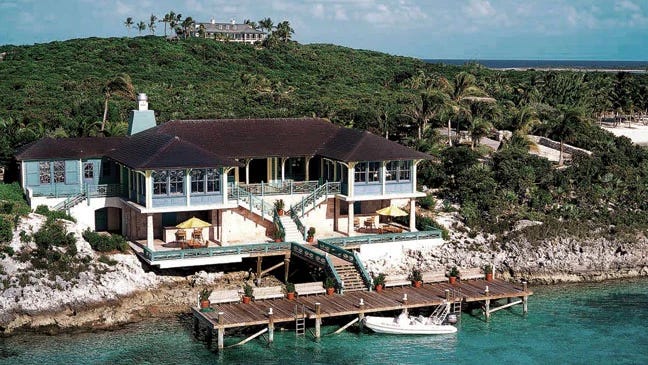 The Island, grim detox setting we’ve heard so much about these past few weeks. “Little Halls Pond Cay” in the Bahamas covers 45 acres with six beaches, a palm tree-lined lagoon and solar-powered houses. Reportedly purchased for $3.6 million back in 2004.