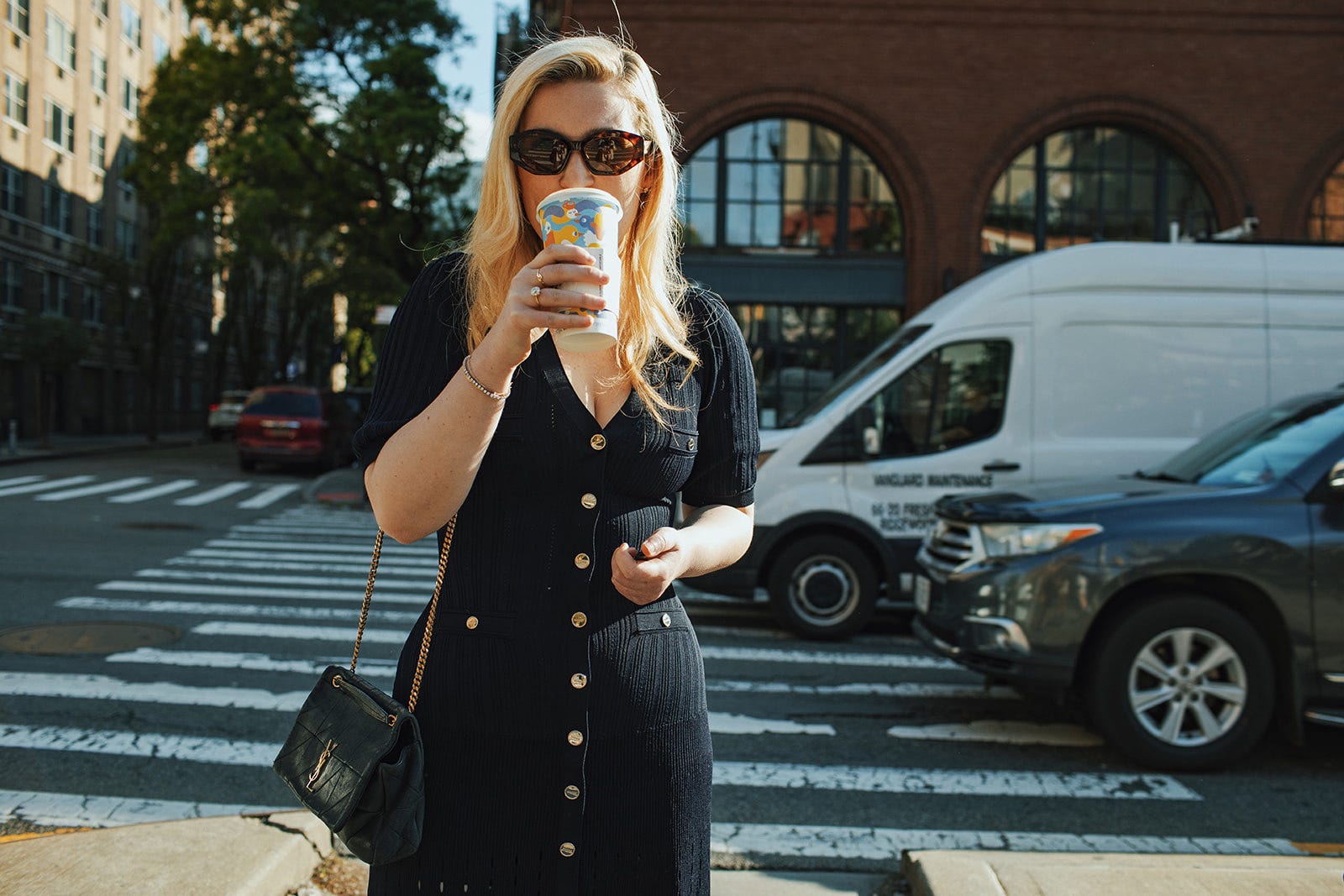 I always dress pretty much the same. I travel so much and I don’t like to have to think too hard about what I pack or what I wear, so I keep it simple. I like materials that I can fold up really tiny; I don’t like having luggage or being weighed down by stuff in general. I am usually in black, high neckline, form fitting dress or pencil skirt, silk or cashmere. I wore a version of my uniform: black cashmere Gabriela Hearst dress and black Louis Vuitton stilettos.