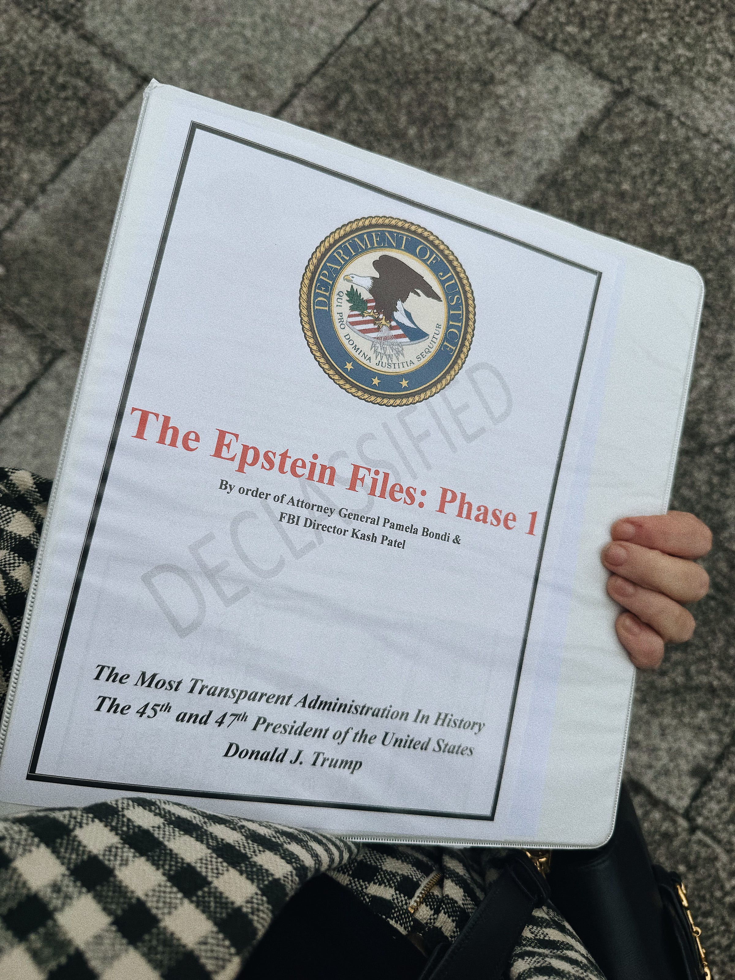 Second, while we were there, the first batch of Epstein files dropped—handed over in thick white binders by Attorney General Pam Bondi herself. A stunning surprise, to say the least.