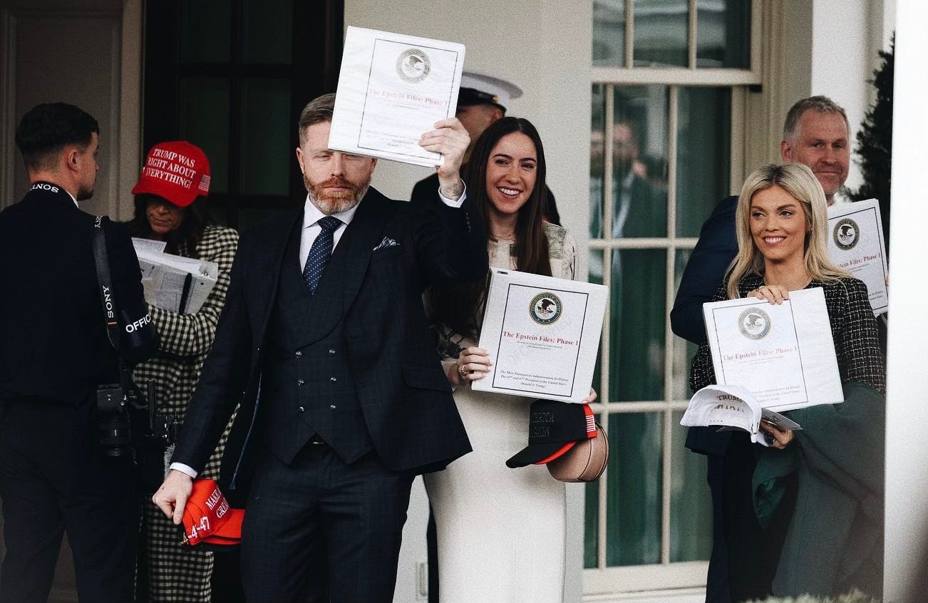 “A group of conservative influencers left the White House on Thursday afternoon, all holding white binders emblazoned with the Department of Justice seal. Some of them held up the binders to the cameras, which showed that they were labeled “The Epstein Files: Phase 1.”